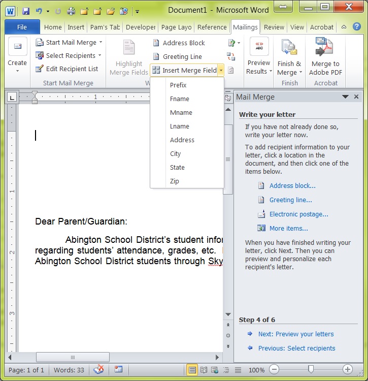 We’ve tried mail merge to pull information from a spreadsheet into a word document.